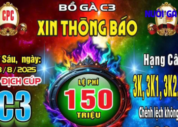 Read moreBồ Gà C3 thông báo "Giải Vô Địch Cup Gà Tự Do CPC3 ngày 08/08/2025. Hạng cân: 3000G - 3100G...
